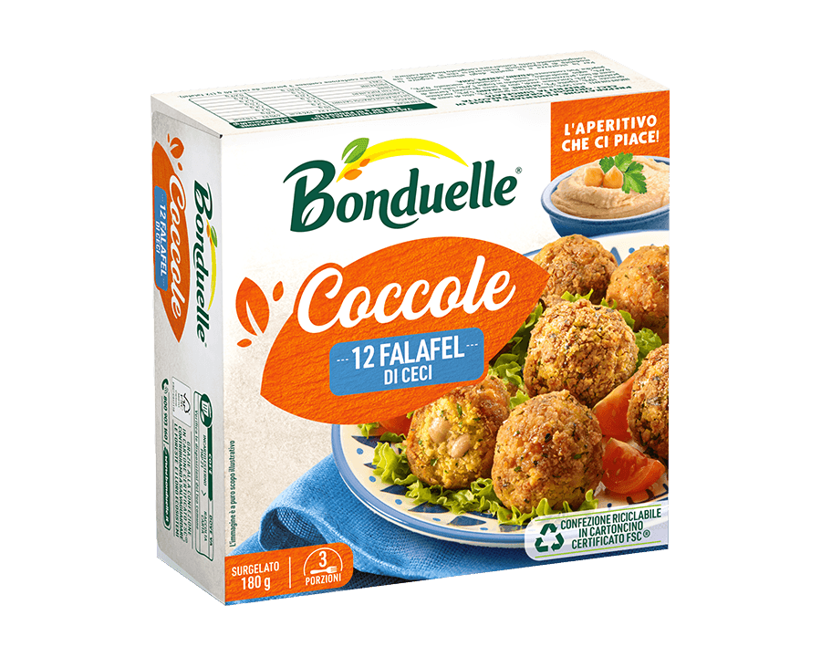 Scopri Le Coccole di Bonduelle: dalle crocchette e falafel sfiziosi per l’ aperitivo, ai tortini perfetti come contorni, fino ai burger ideali come secondi piatti.